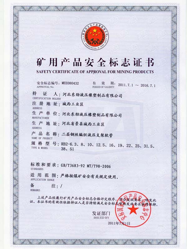 • 鋼絲編織管采用國際標準認可認可證書